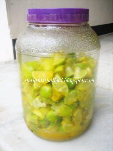 My interest in pickling has no bounds. This is my MIL's way of pickling elumichangai oorugai. While a fresher, my husband taught this to me.
